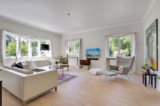 Ejendommen er opført i 1932 og er løbende moderniseret, så de i alt 257 kvadratmeter i dag fremstår i super stand. Store vinduespartier, lyse materialer og lette niveauforskelle skaber en unik, lys og luftig atmosfære, som kan mærkes, lige fra du træder ind i den store hall.
