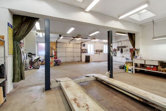 Værkstedet er særdeles rummeligt på 154 kvadratmeter og har tidligere været drevet som værksted. Her er plads til et par biler samt lidt lagerloft til opbevaring af diverse. Derudover er der mandskabsfaciliteter som baderum, toilet, lille frokoststue samt kontor.