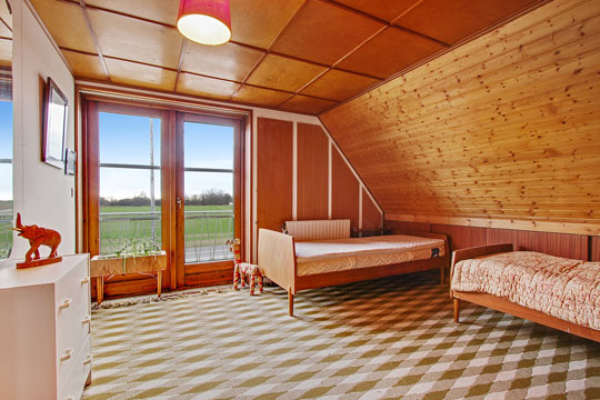 På 1.sal er repos med kvist og udsigt, soveværelse, værelse samt kammer og toilet.