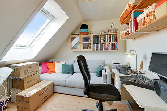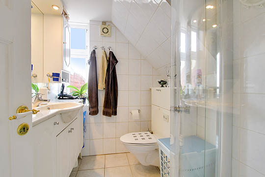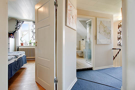 Husets tre værelser er placeret på førstesalen sammen med et badeværelse.