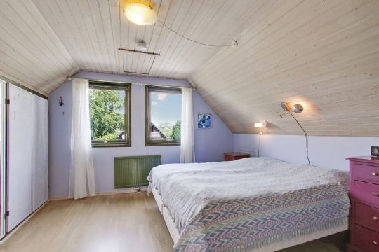 Huset er indrettet med både opholdsrum og soveværelser på begge etager.