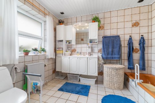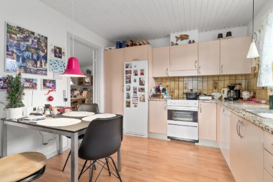 Huset indeholder bryggers, køkken med spiseplads, rummelig stue og udestue samt tre værelser og et badeværelse med bruser og badekar.