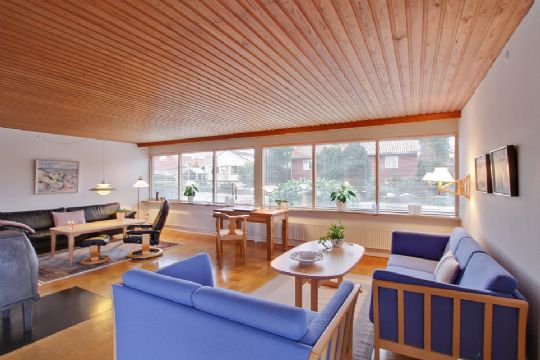 Ugens Hus hos DanBolig er en velholdt villa 115 kvadratmeter på Borgmester Nielsens Vej i Rønne med funktionel kælder og garage på kuperet grund.