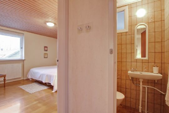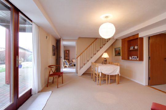 Villaen indeholder blandt andet entré med nedgang til kælderetage, opholdsstue med udgang til vestvendt altan, køkken, værelse, soveværelse med direkte adgang til badeværelset, separat toilet med vask.