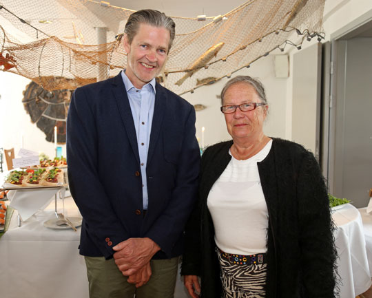 Som det ses på nedenstående foto var en af de mange BornholmsTrafikkens tidligere adm. direktør Kaj Dinesen og naturligvis hotelejer Birte Jensen, der for et par år siden fyldte 70 år. Hun har drevet hotellet siden 1968.