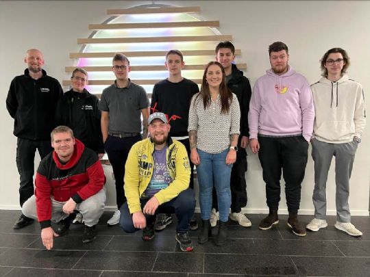 De nye smedePå billedet bagerst, fra venstre: Martin Kofoed, faglærer, Sanne Thunø, faglærer, Casper Rehfeld Aakjær, Jensen Denmark A/S, Daniel Henriksson Hansen, Jensen Denmark A/S, Josef Spanner Hansen, Bornholmslinjen, Mathias Vang Olsen, Bornholms Hospital, Oliver Jørgensen, Ole Almeborg A/S. Forrest fra venstre: Jonas Hvid Johannesen, Ole Almeborg A/S, Emil Ramgil, Bornholms Bioenergi ApS, og Mette Høck Hofmann, Jensen Denmark A/S.