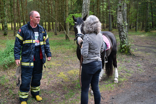 Da den unge rytter var kastet af, tog hesten flugten. Den blev senere fundet græssende i skoven. En kondiløber fik fat i hesten, der blev afleveret til ejeren.