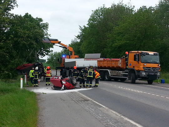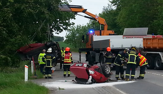 Redningsmandskabet kunne kort efter konstatere, at en bil var kørt ind i træ ud for Rønnevej 25 og blevet delt i to.