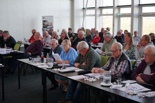 Et udsnit af deltagerne ved 3F Bornholms generalforsamling på Hotel GSH i Rønne. Foto: Bjarne Hansen- Vi ved jo, det eneste sikre ved de manøvrer er, at medarbejderne skal løbe stærkere til en lavere løn, og i mange tilfælde hos uorganiserede arbejdsgivere hvor arbejdsmiljø og løn er er på et niveau der ikke hører hjemme i Danmark.