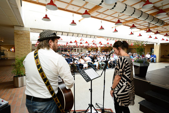 ”En festlig begivenheden med dimissionstale af uddannelseschef Klaus Kristiansen, lærertalen af lektor Michael Jensen, elevtaler, sange og ikke mindst overrækkelse af eksamensbevis og bogpriser,” fortæller Ann Due.