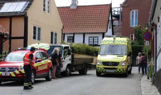 Ambulancen ankom kl. 13:18. Indtil da sørgede indsatslederen fra Bornholms Brandvæsen for at hjælpe damen.