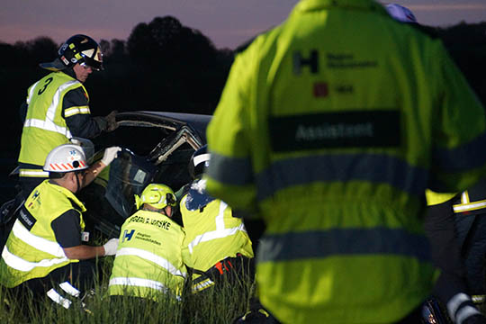 Der blev sendt redningsdmandskab og hospitalets akutbil til stedet, da meldingen til Alarmcentralen lød på fastklemte.Brandvæsnet måtte foretage en teknisk frigørelse og klippe taget af bilen for at få personerne så skånsomt som muligt ud af den forulykkede bil.