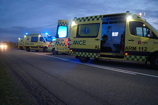 Tre ambulancer og akutbilen fra hospitalet blev sendt til uheldsstedet.