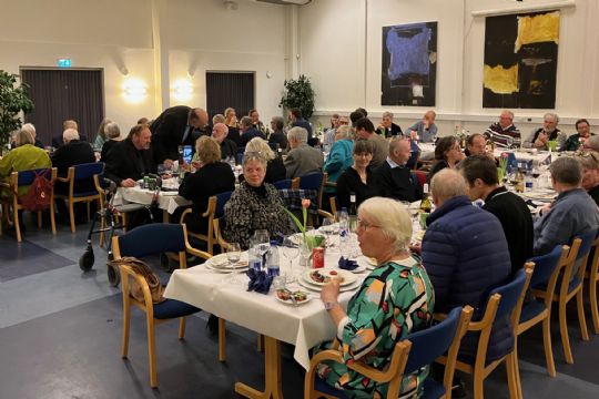 Der blev kræset for 60 medlemmer af De Bornholmske Amatørarkæologer med en tre retters menu og vin ad libitum i Åkirkeby-Hallerne.