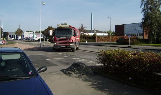 ”Hele mandagen har der været asfaltsarbejde i gang. Det bevirker, at vejen er ensrettet i vestgående retning og det kun er muligt at komme ind til Zahrtmannsvej fra den østlige rundkørsel.