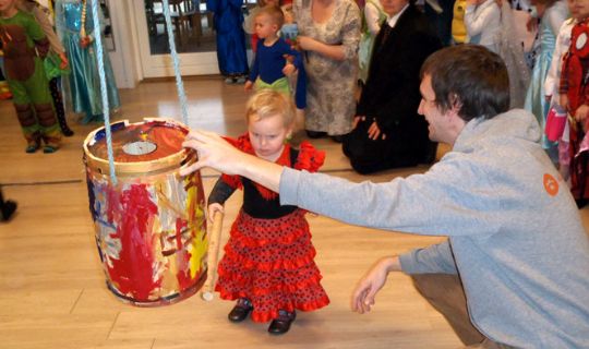 - Vi startede dagen med at synge nogle fastelavnssange, og bagefter skulle vi slå til tønden. Vi havde to tønder, så alle kom til at slå det bedste, de kunne.