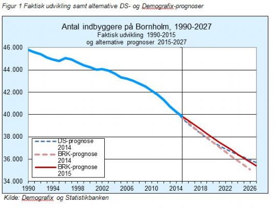 Ifølge Bornholms Regionskommunes befolkningsprognose 2015-2027 vil indbyggertallet falde med yderligere ca. 4.430 personer.