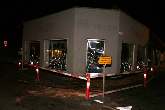 RØNNE – En 24-årig beruset bilist kørte natten til tirsdag ind i en cykelbutik i Søndergade i Rønne.