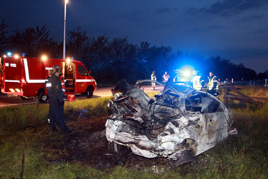 Politiet fik meldingen om uheldet kl. 02:51, da en forbipasserende havde set den brændende bil.