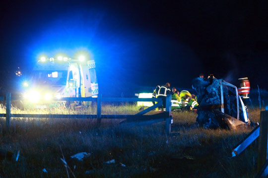 Hvorvidt føreren blev kastet ud af køretøjet eller om han selv er kravlet ud vides ikke. Brandvæsnet fandt ham stående på marken tæt på den brændende bil, da de nåede frem.