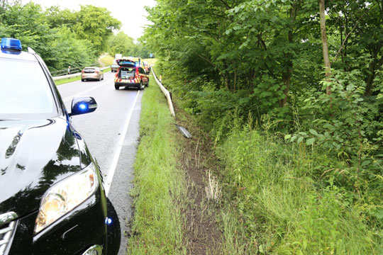 En bilist mistede ved Bådsted herredømmet over vognen, som kom ud i rabatten og op at ride på autoværnet, hvorefter den endte i grøften blandt nogle træer et stykke længere fremme.