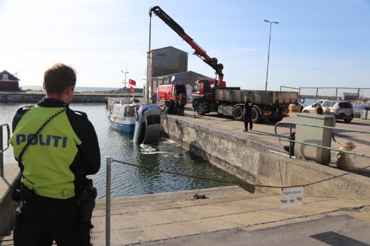 HASLE – En bil trillede mandag eftermiddag i havnebassinet i Hasle.