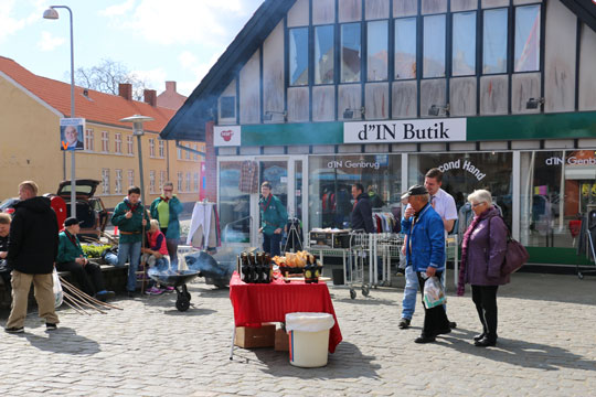 Alle butikker i Nexø har travlt i dag, men byens bager har ekstra meget at se til, for Bager Mortensen er vært ved to store gratis kaffeborde.