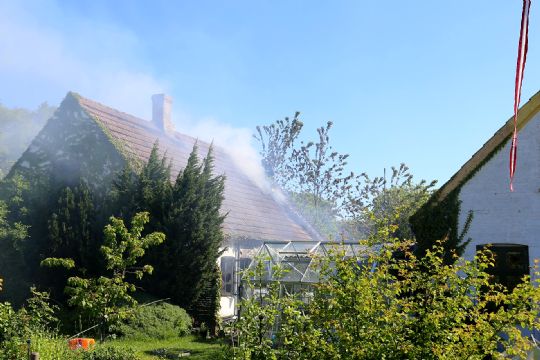 - Vi kunne se røgen på afstand, men fik den relativt hurtigt under kontrol. Vi måtte fjerne en del af taget for at komme til at slukke på førstesalen, siger Henrik Madsen.