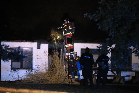 Der var ild i tagkonstruktionen på det stråtækte hus, og der blev sendt flere brandkøretøjer til stedet. Blandt andet en stigevogn.