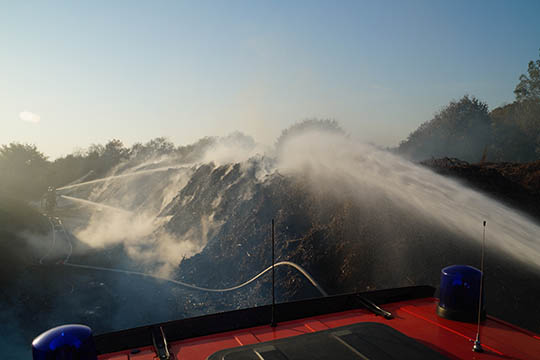 - Den er på 10 gange 5 meter, så det er en stor bunke. Vi har hældt vand på, og så får vi en maskine til at komme og sprede indholdet ud, så vi kan få det slukket, fortæller indsatslederen.