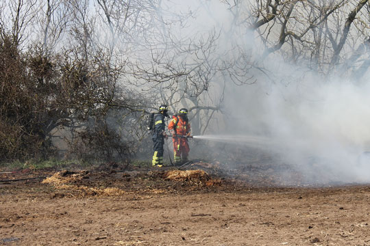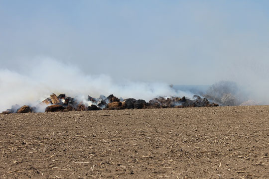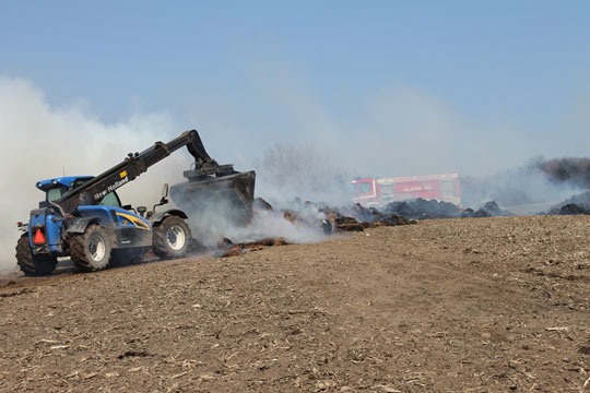 Bornholms Brandvæsen blev fredag kl. 12:23 alarmeret, fordi der var udbrudt brand i et større oplag af bigballer på Teglkåsvej nord for Hasle.