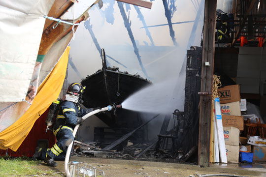 Der er sket store skader på bygning og inventar, herunder en mindre båd, der var til reparation.