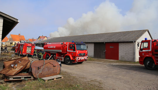 Bornholms Brandvæsen og Falck i Nexø blev søndag kl. 10:39 kaldt ud til en alarm om en voldsom brand i et redskabshus på Sdr. Hammer i Nexø.