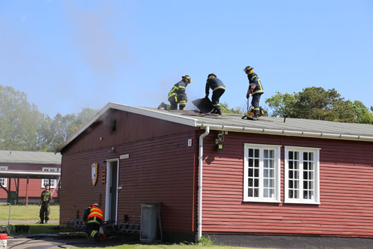 Fredag kl. 14:36 blev Bornholms Brandvæsen alarmeret på grund af en brand på Almegårds Kaserne i Rønne.