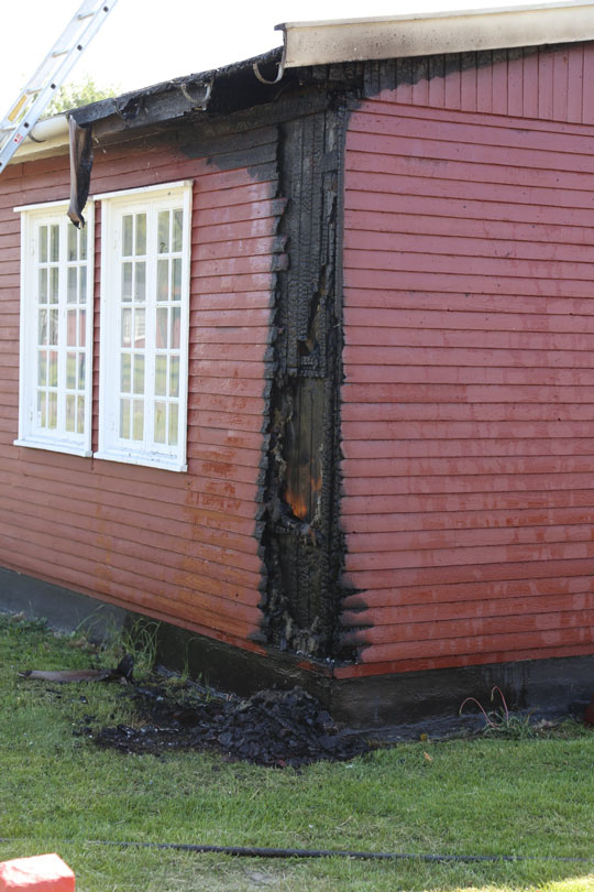 Indsatsleder Henrik B. Christensen fra Bornholms Brandvæsen oplyser, at loftet i halvdelen af bygningen brændt.
