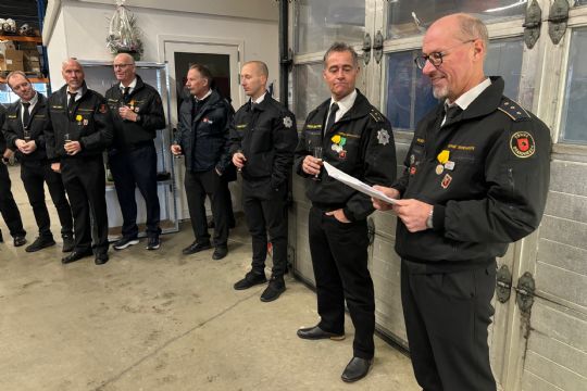Stationsleder Morten Bech gennemgik årets mange opgaver. Foto: Bjarne HansenVarmen var så kraftig, at der også skete skader på bygningen med lejligheder og butikken Normal.