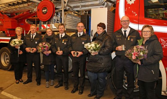 Fire jubilarer og deres familier blev hædret; Per Larsen og Michael Jensen med 25 år som aktive og Torben Olsen og Niels Kure med deres 20 års jubilæum.