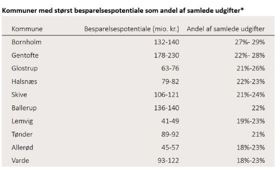 BORNHOLM - Bornholms Regionskommune har ifølge en ny analyse fra tænketanken Cepos det største besparelsespotentiale i Danmark målt som andel af de samlede kommunale udgifter.