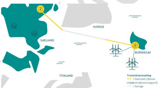 Søkablet strækker sig fra den sydlige kyst ved Bornholm til Øresund ved Karlstrup