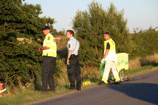 ”Beredskabsstyrelsen i Allinge og Bornholms Brandvæsen er kort efter kl. 20:00 blevet tilkaldt til at løfte crosseren væk og til at bære den forulykkede op fra den 3-4 meter dybe grøft,” siger vagthavende.