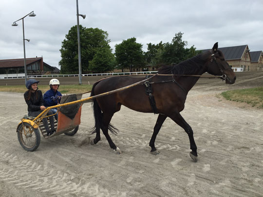 Formiddagen blev tilbragt på Charlottenlund Travbane, som i år er fyldt 125 år. Den professionelle københavnske travtræner Kenneth Nielsen rev et par timer ud af kalenderen, for at servicere de unge, fra modsatte side af Østersøen.
