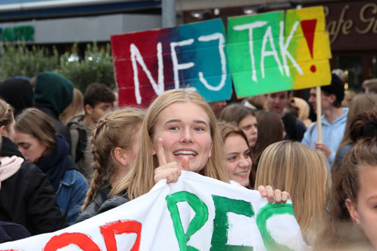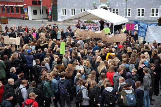 Elever fra HTX, HHX og STX samt HF mødtes til demonstration på Store Torv kl. 12:30.