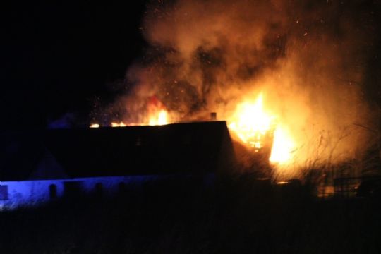 RØNNE - Bornholms Brandvæsen rykkede kort før kl. 02:00 ud til en kraftig brand på en gård på Aarsballevej i Aarsballe.
