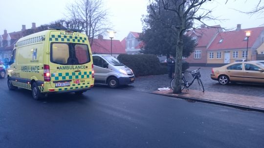 En 68-årig kvindelig cyklist blev påkørt af en varebil ved Hovedvagtspladsen ved indkørslen til Ved Brønden.