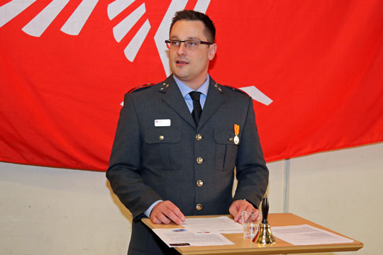 Klaus Rønne Jensen ved Falcks nytårsparole på Falck i Rønne. Foto: Leif Nielsen- 2016 var også året hvor Falck blev akkrediteret efter nye ISO standarder. Det Bevidner, at Falck vil være et kvalitetsbrandvæsen, lederne vil det, mellemlederne vil det, og ikke mindst brandmændene vil det, sagde Klaus Rønne Jensen.