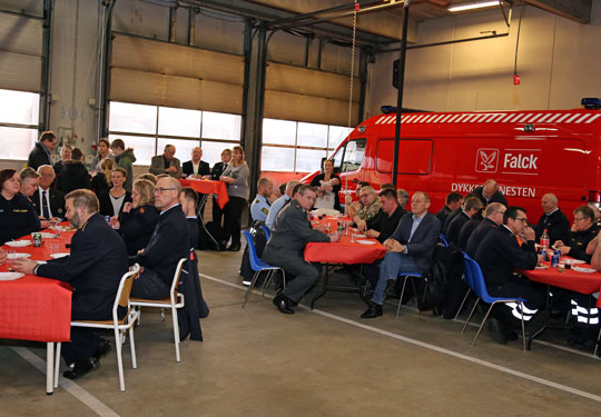 Store dele af beredskabet var mødt frem til den traditionsrige nytårsparole hos Falck. Foto: Leif NielsenHan nævnte også, at Falck har trukket på Bornholms Frivillige Redningsberedskab i årets løb: