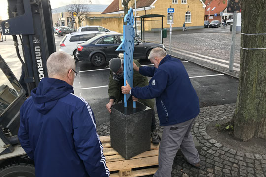 Vi fik hjælp fra Nexø vodbinderi Claus Hjort til at flytte skulpturer i formiddags.