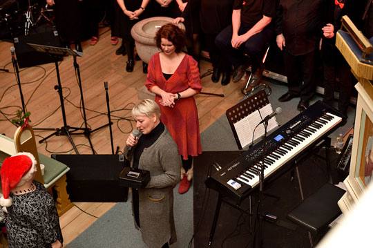 Dagen efter, søndag, holdt Gospelfællesskabet Bornholm jule-gospelgudstjeneste i Musikhuzet.