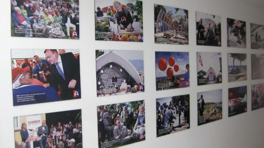 Man ser også andre politiske tegn, når man bevæger sig rundt på hotellet. Adskillige billeder fra Folkemøder pryder f.eks. væggene i en af stueetagens gange.