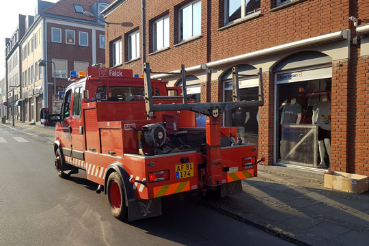 Falck sørgede tidligt lørdag morgen for at der blev ryddet op på fortovet og at hullet i ruden blev dække af.